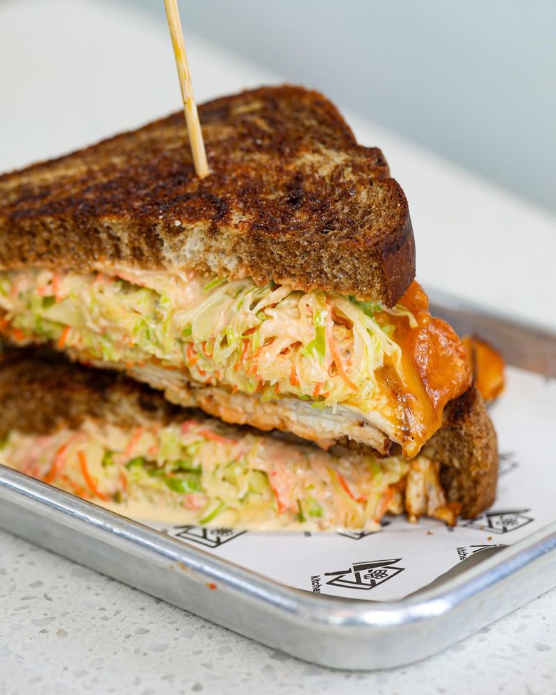 Cheddar , honey and citrus slaw.