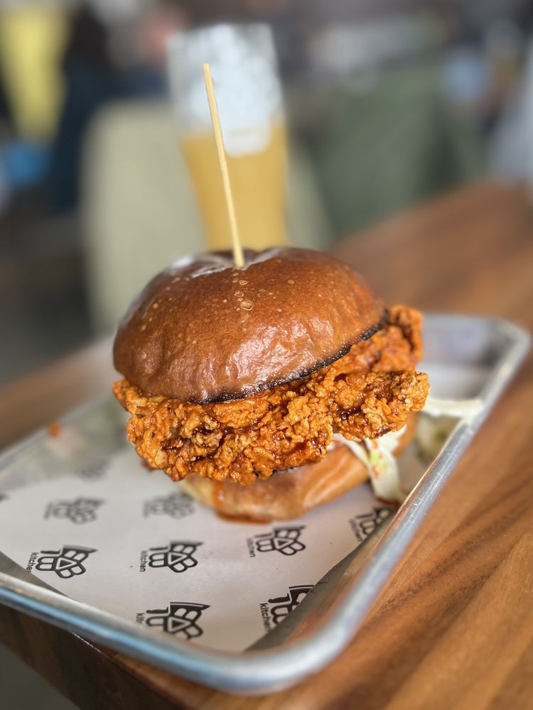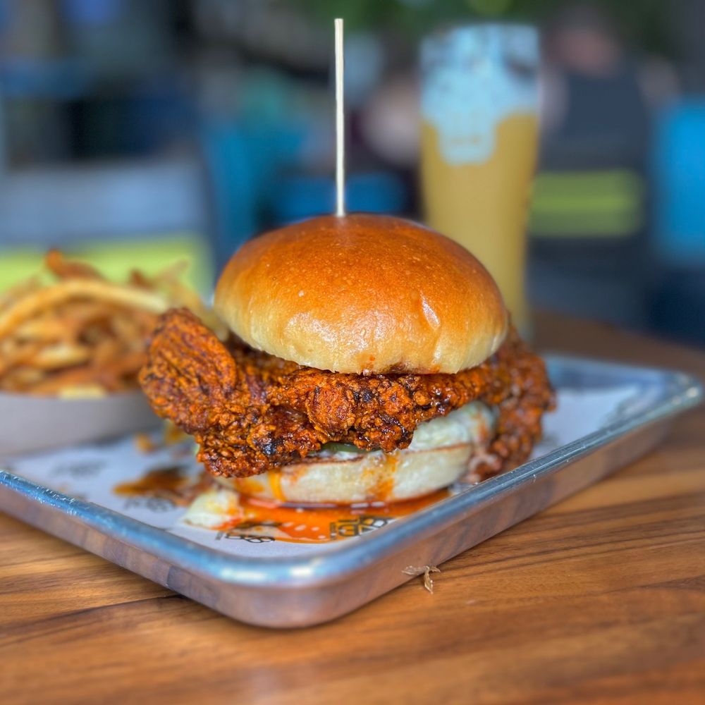 Bissel bros, beer battered with honey citrus slaw and lime clintro cream.